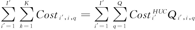 可划分为中间产品成本(Costi’,i,k)和回收废弃物成本( Costi′,i,q):