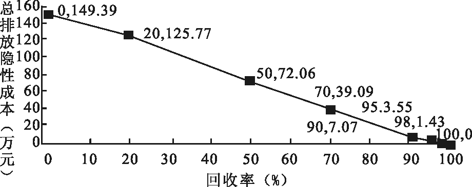 图7 回收率水平与总排放隐性成本的关系