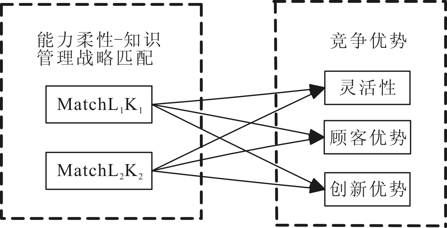 图2 能力柔性与知识管理战略匹配对竞争优势影响概念模型