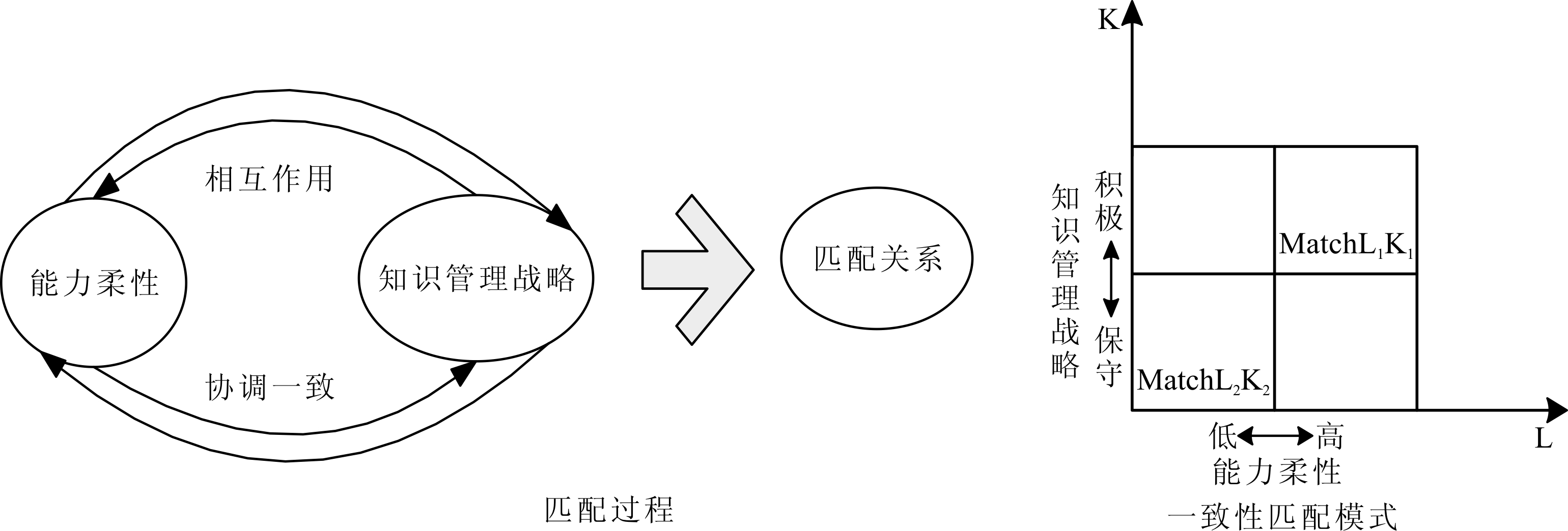 图1 能力柔性与知识管理战略匹配过程及一致性匹配模式