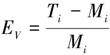 式(2)中,EV表示当年第i个城市空气PM2.5浓度达标情况,用数字表示;Ti表示根据《环境空气质量标准》确定的空气PM2.5二级年平均浓度限值;Mi指第i个城市空气PM2.5年平均浓度。