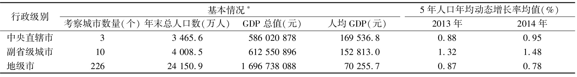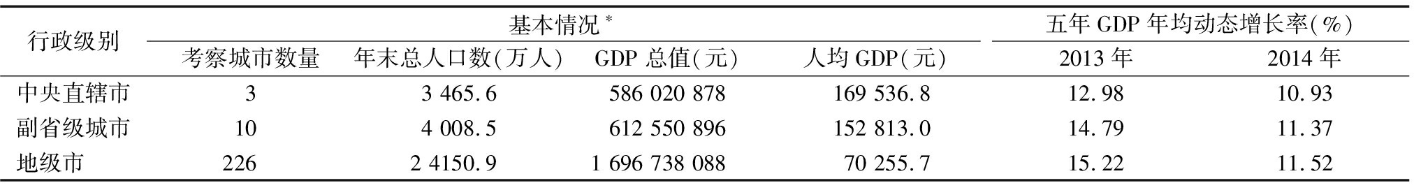注:*基本情况均为2014年数据;年末总人口数和GDP总值为239个城市相应指标值之和,GDP总值除以年末总人口数求得人均GDP