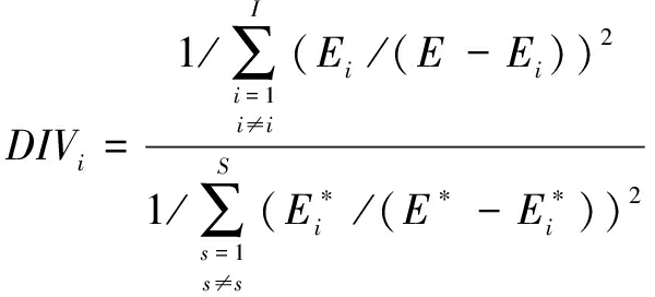 式(3)、(4)中,SPEi代表江苏省i产业专业化集聚程度,DIVi代表江苏省i产业多样化集聚程度,Ei代表江苏省i产业平均用工人数,E代表江苏省工业行业平均用工人数,