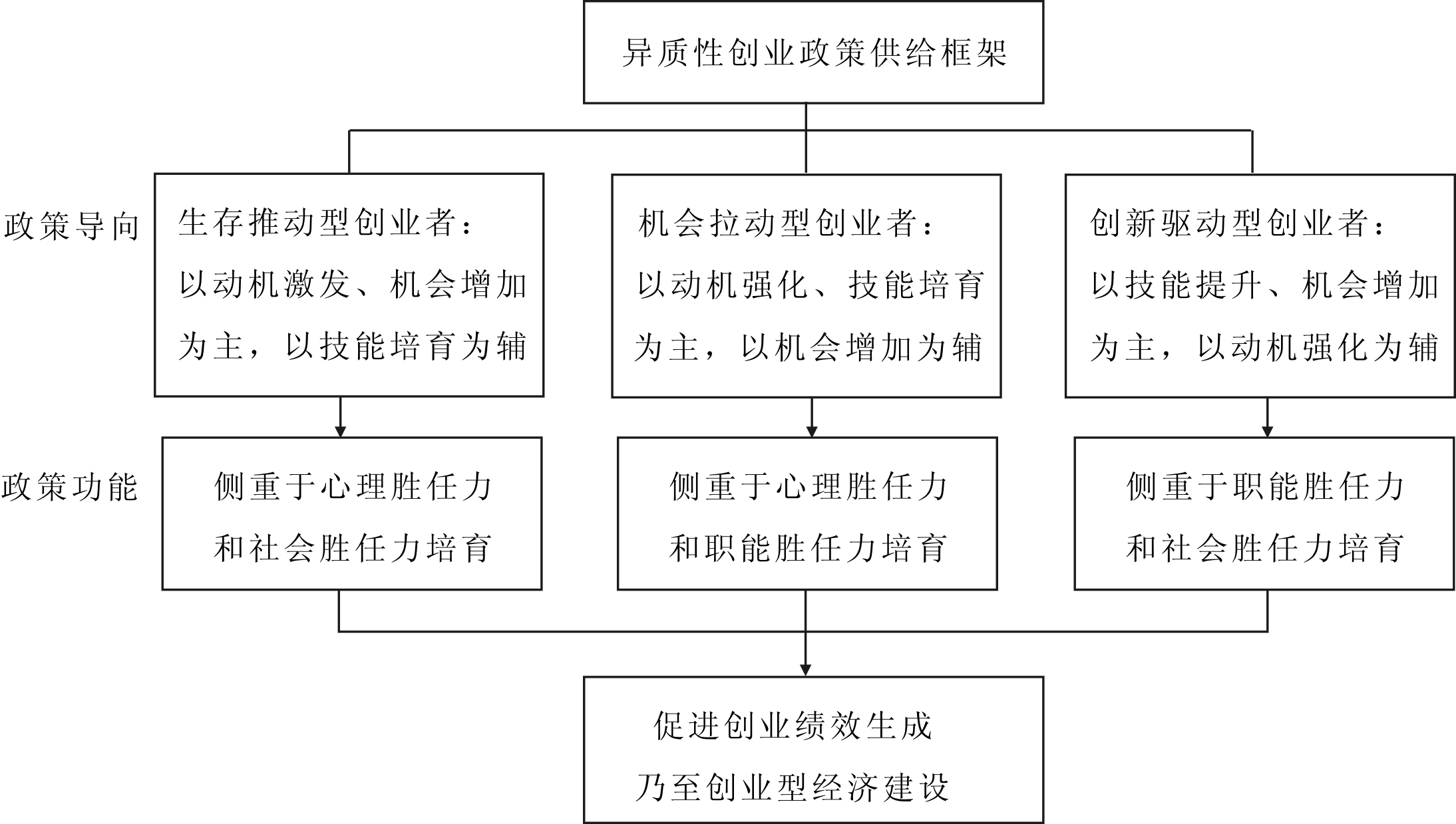 为提高创业政策供给的有效性,本文借助创业MOS模型,首先探析创业政策供给对创业者创业胜任力的影响机制,进而构建异质性创业政策供给框架。