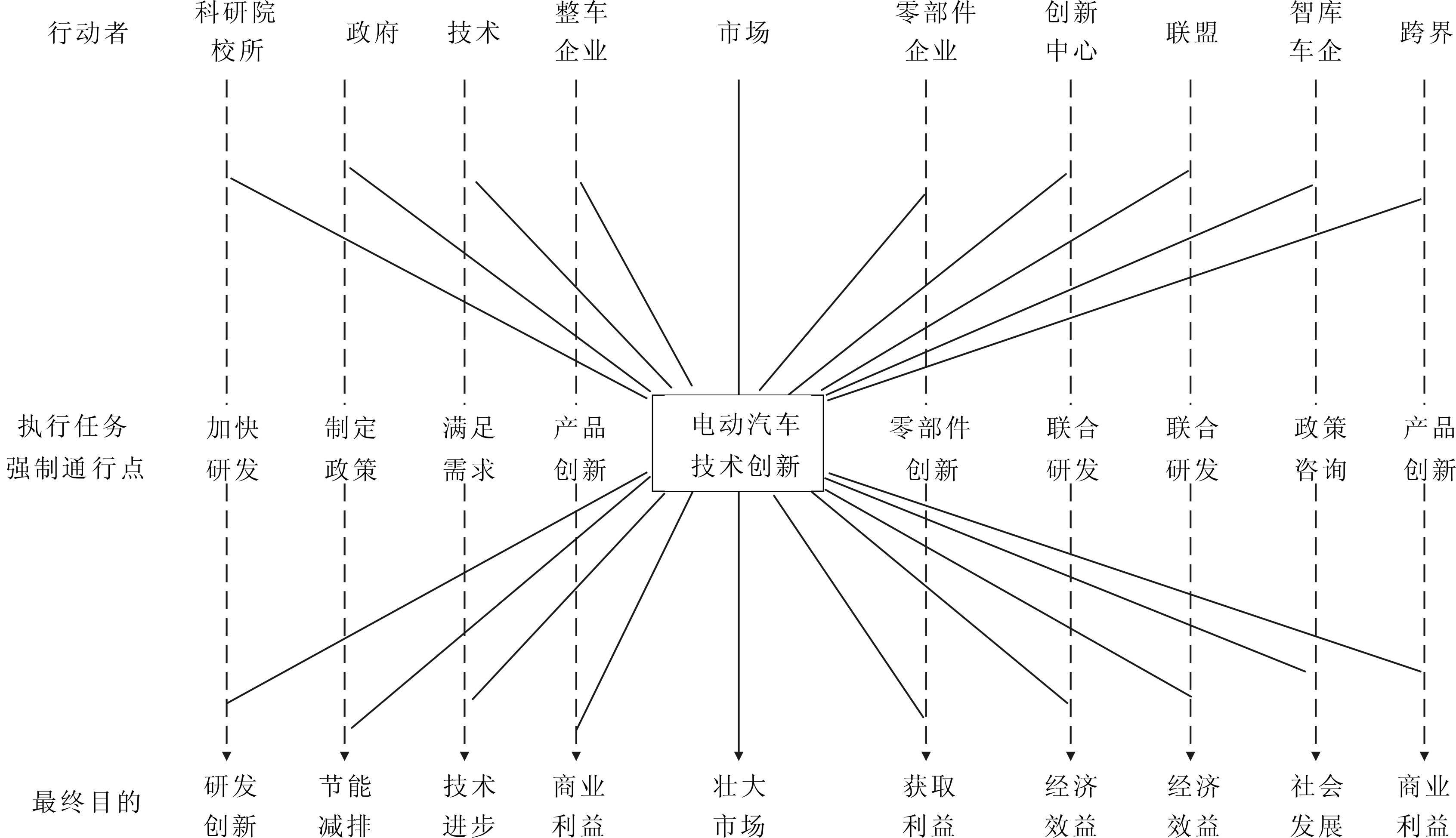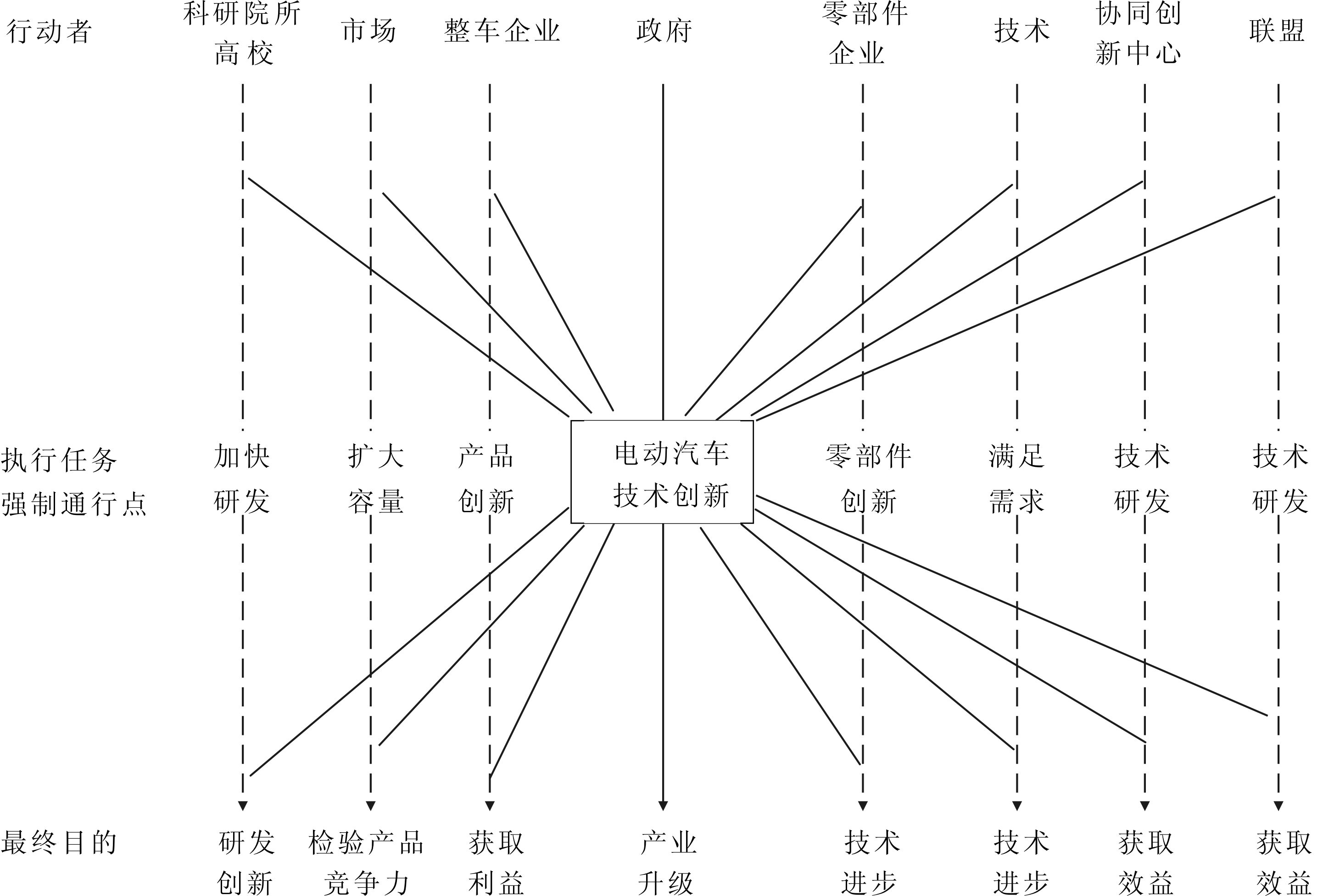 (3) 征召。如同前一阶段,政府接受征召,就需要创造良好的政策环境,提供相关产业政策支持,并对电动汽车技术研发提供政策性资金支持。高校和科研院所、车企、零部件企业及创新联盟、智库等接受征召,就需要承担相关研发和创新任务。