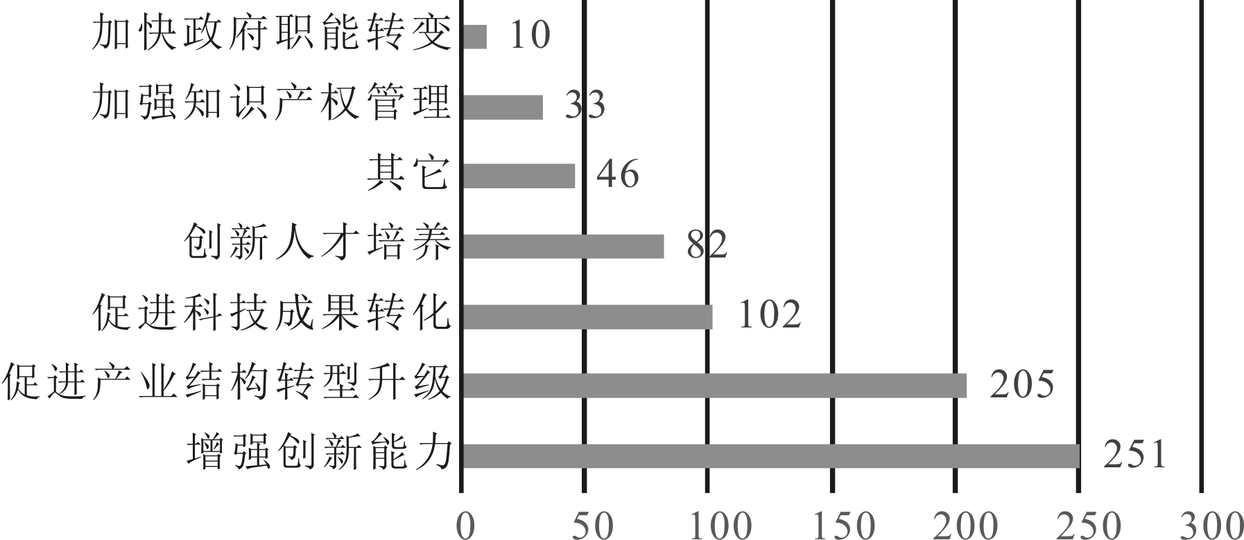 图5 不同协同创新政策目标政策发文数量分布(条)