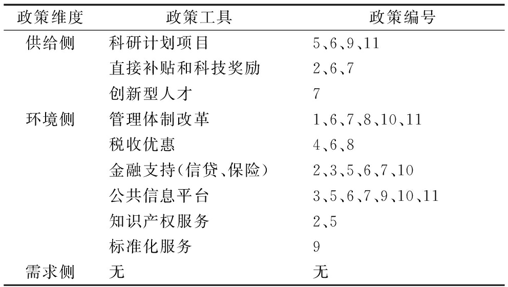 表2 11项政策中3个维度政策工具的应用情况