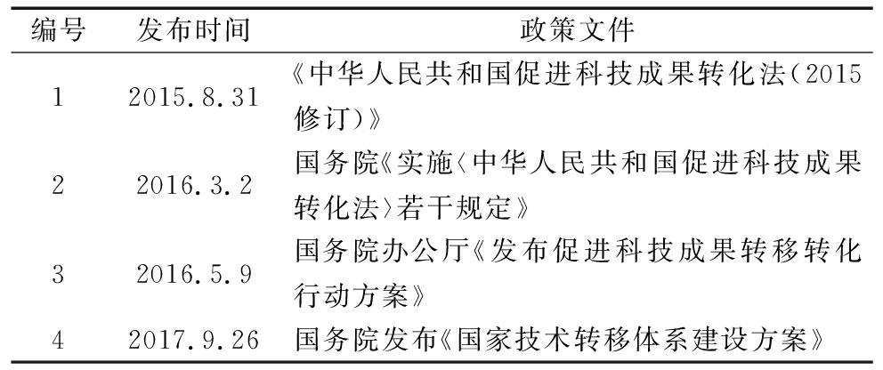表12015年以来主要科技成果转移转化政策
