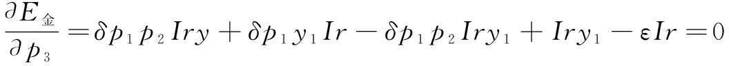 金融机构的期望收益为:E金=p3(δp1p2Iry+δp1y1Ir-δp1p2Iry1+Iry1)+(1-p3)εIr