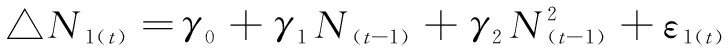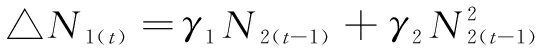 △N1(t)={γ1+γ2N2(t-1)}N2(t-1)