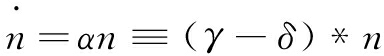 在外部变量α的支持下,创新群体或以指数增长,或以指数衰减,临界状态为γ=δ,对于γ或δ的小扰动是不稳定的,因此不存在定态,这也符合社会经济发展的基本形态。可见,系数γ或δ或二者同时与n有关,可得方程如下: