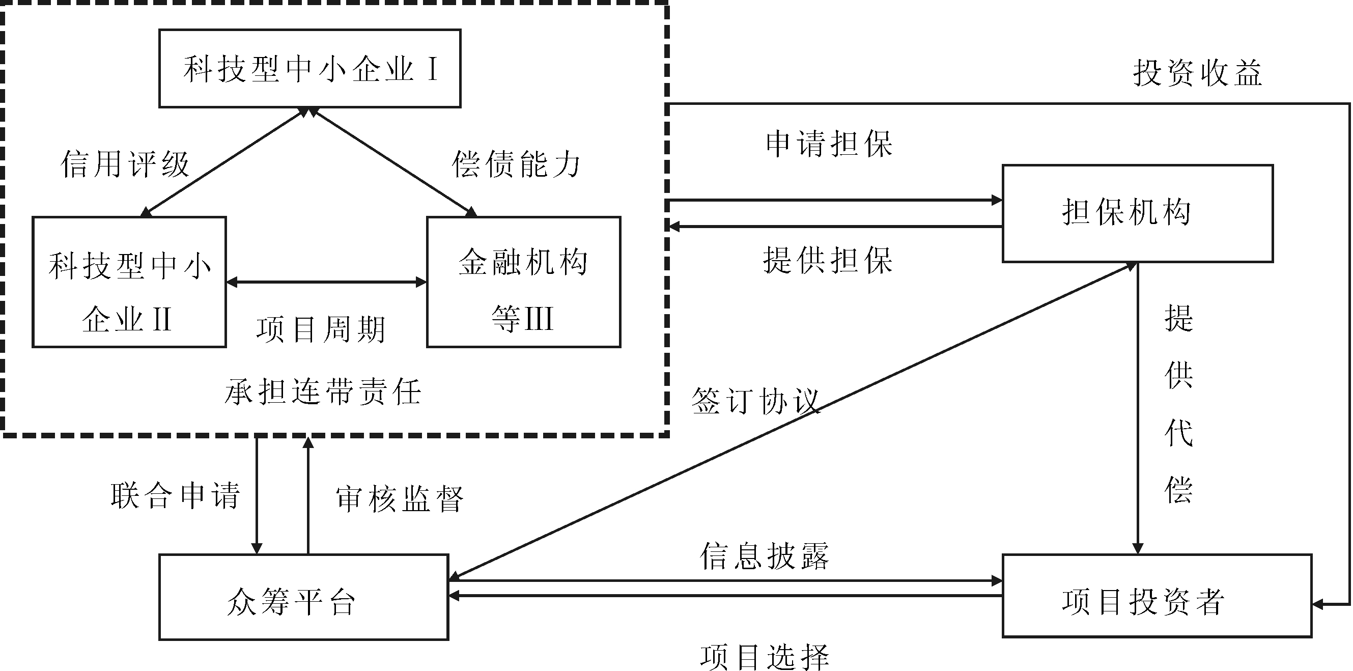 科技型中小企业或项目发布方通过考察信用水平、偿债能力、项目周期、资本规模等指标,选择连带成员,共同签署连带责任协议,形成一个连带责任共同体,一旦有企业违约,其它企业将承担连带责任[16]。连带责任共同体向众筹平台提出申请,发起科技项目众筹,担保企业和金融担保机构作为连带责任体提供信用担保,与众筹平台签订协议[17],众筹平台进行考察筛选与审核监督,并向大众投资者定期披露信息,为投资者投资决策创造良好的信用条件。一旦科技型中小企业违约,由担保机构代偿,保证投资者收益,同时担保机构具有追偿权。通过互联网科技众筹增信模式,不仅能够降低互联网科技众筹信用风险,还能促使更多科技型中小企业众筹融资成功,并提升众筹平台信用水平和知名度。