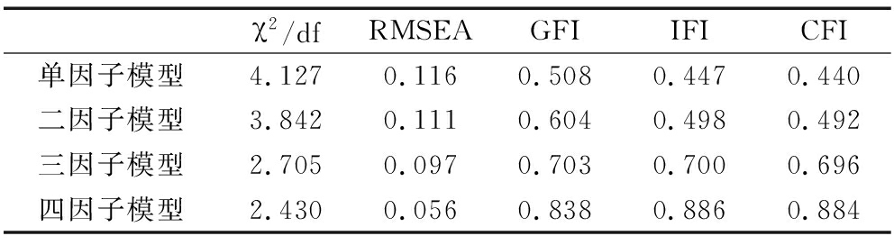 表2四模型验证性因子分析结果