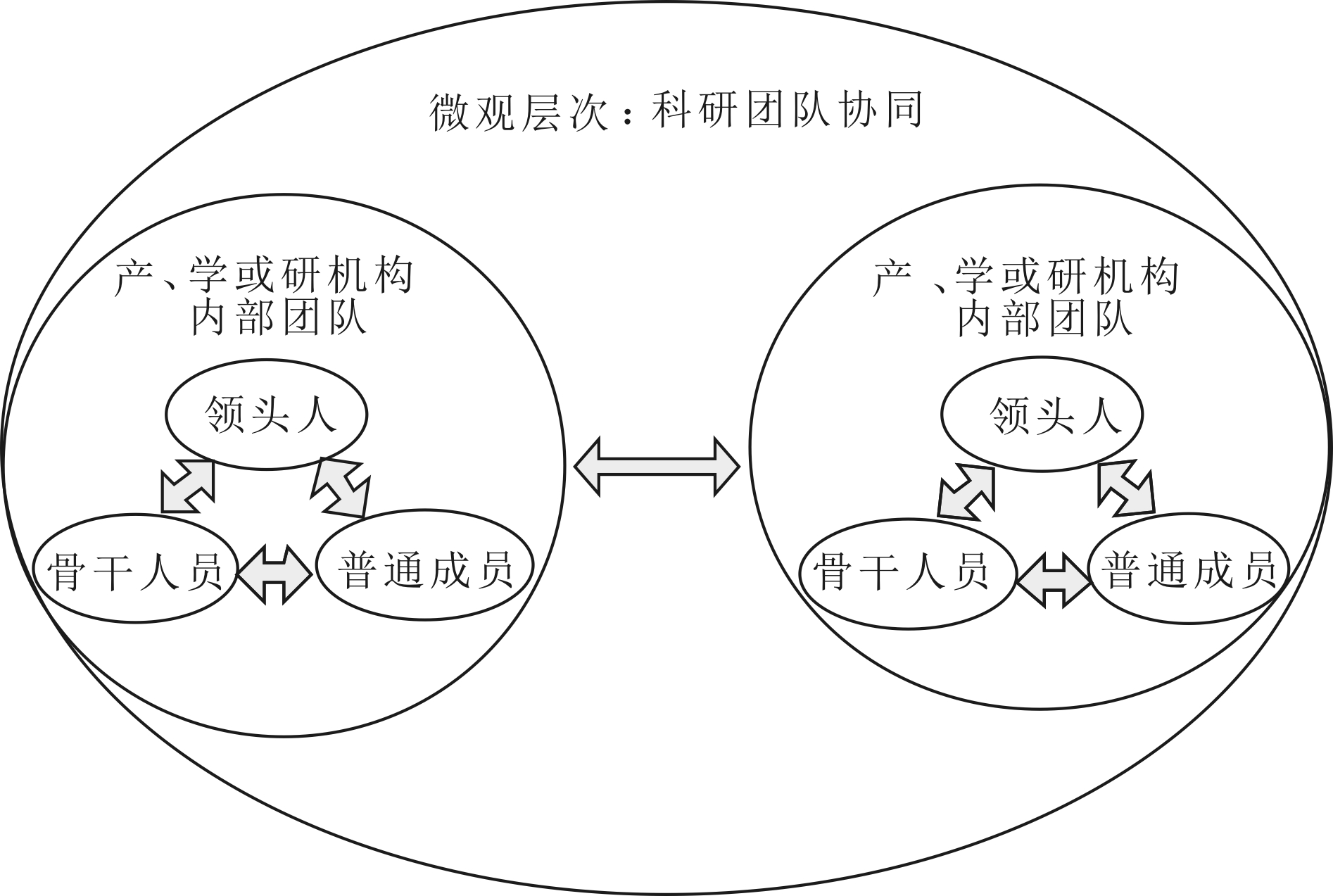 综上可知,从宏观角度理解协同创新内涵时,科技、教育与经济系统的有效协同是实现创新的重要基础,也是协同创新的追求终点;从中观角度理解协同创新内涵时,需突出产学研三方相互交迭、互相依赖并彼此推动,及由此产生的整体非线性效用;从微观角度理解协同创新内涵时,应把握科研团队成员基于各自能力和优势展开有效合作,进而实现优势互补与合作共赢的特点。