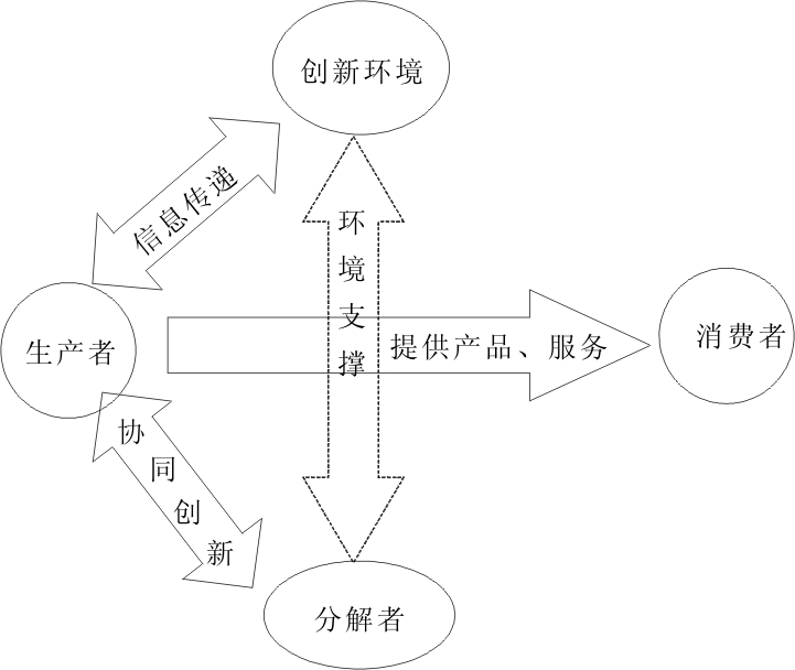 自主创新生态圈内的生产者主要包括企业、科研机构以及高等院校。由于自主创新所需完成的知识创造、知识转移、知识应用以及知识价值化等活动极具风险性、复杂性,只有具备专业知识、专有职能的个人、单位、组织才能胜任。