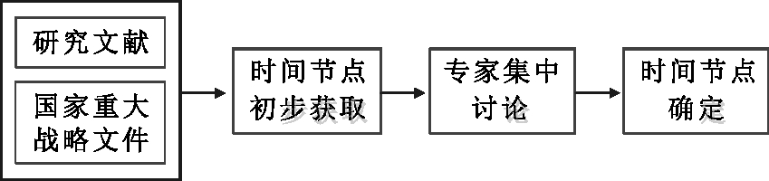 (2)时间节点选择流程。时间节点的选择过程主要分成4个步骤:资料查找、时间节点初步获取、专家集中讨论、时间节点确定(见图6)。