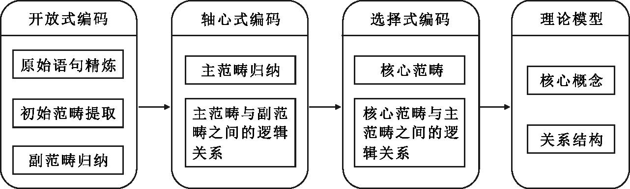 本文开放式编码过程主要分成原始语句精炼、初始范畴归纳和副范畴归纳3个环节。