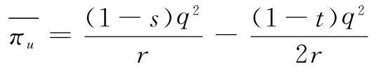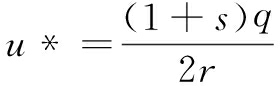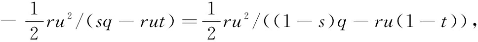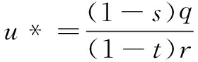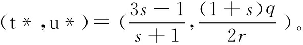 即当学研方选择的技术创新程度为u=q/r时,博弈的均衡点落于图1的契约曲线上,此时只要企业方选择的成本分摊比例