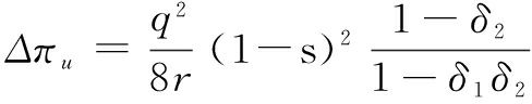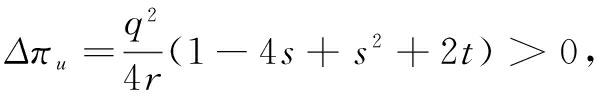 本文中将有效帕累托改善下的系统整体收益增量记为Δπt,不失一般性,假设学研方为参与人1,则有: