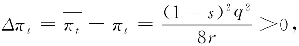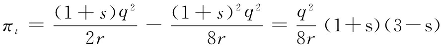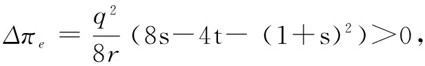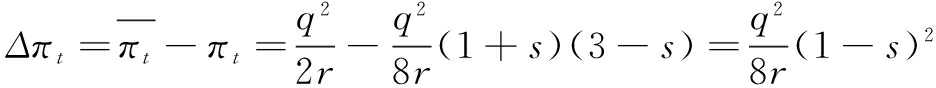 由式(5)可得隐含条件s>1/3,也即企业方愿意分摊学研方技术创新成本的前提条件是其在新增收益中的分配比例大于1/3。