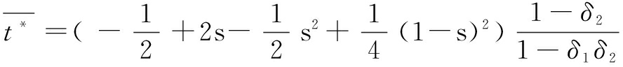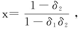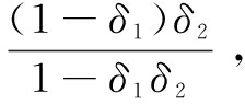 其中,δ1和δ2分别代表了参与人1和参与人2的贴现因子,贴现因子的大小由参与人的耐心程度决定。参与人1得到的收益份额为x,而参与人2得到的收益份额为1-x。给定条件下,耐心程度越高,即贴现因子越大的参与人所获得的收益份额越大,而耐心程度取决于参与人的机会损失、风险偏好等。