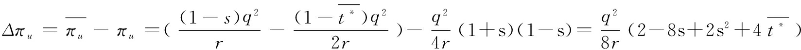 假设2:技术创新通常会带来产品质量提升或生产成本降低,在本研究模型中,假设协同创新行为将降低产品生产成本,每单位产品的降低幅度为u。