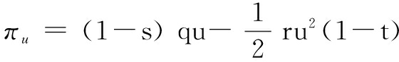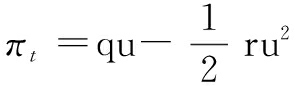 其中,r为技术创新所需的投资参数。Cohen和Kleppe[13]的实证研究表明,R&D活动存在规模不经济性,其回报随R&D支出的增长逐渐递减。这意味着创新成本函数是凸向u的,因此有γ>1,本研究中假定γ=2,因此,技术创新成本函数为![]()