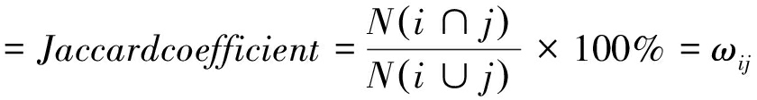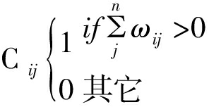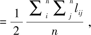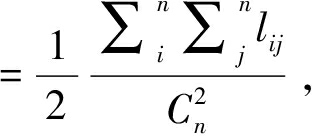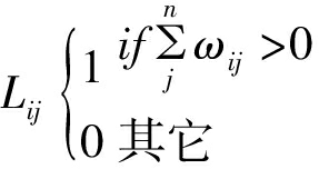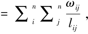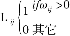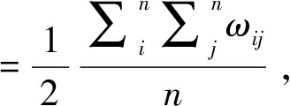 (3)网络凝聚性测度。除了测度网络连通性和包容性外,还可以通过比较未加权平均度与加权平均度的大小测度网络凝聚力。未加权平均度代表节点之间的箭线数量,用Lij计算;加权平均度代表节点之间箭线的累计相关性,用Wij计算;加权网络中连接平均加权是指上述两个数值之间的比率,具体计算方法为: