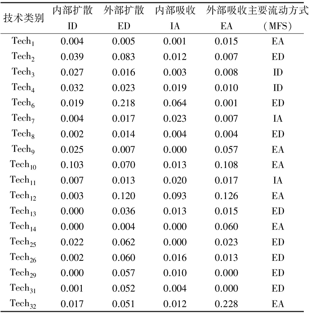 表3 技术类别之间的知识流动矩阵