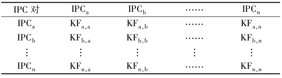 (3)构建专利之间的知识流动矩阵,包含所有不同“IPC对”之间的整个知识流动过程。表2代表了任意两个“IPC”(IPC代码a与b)之间的知识流动数量KFa,b。假设KFB64C,H04B为5,那么它表示从B64C到H04B技术知识转移数量为5。