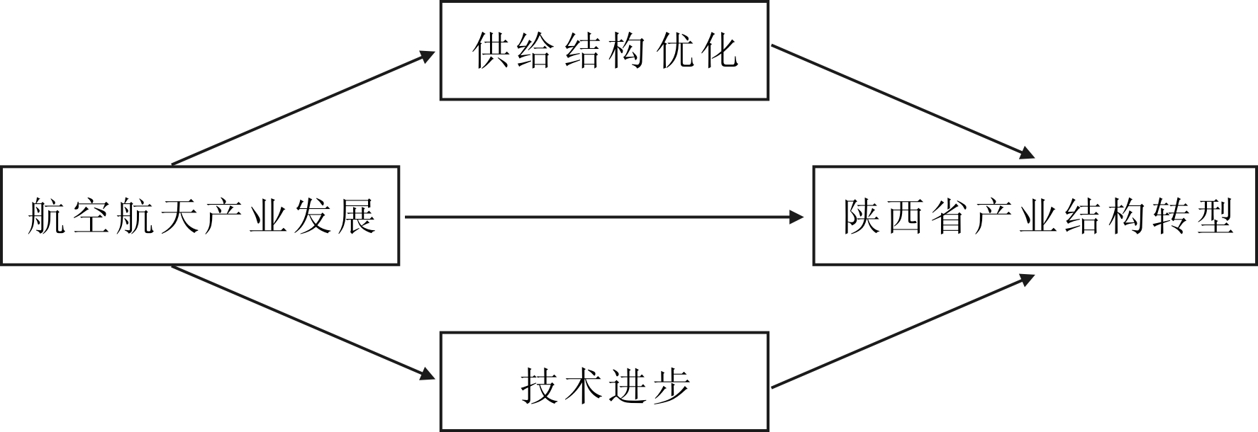 实证结果表明,航空航天产业发展带来的人力资源结构优化和科技进步效应能有效促进陕西省产业结构转型,但通过航空航天产业发展优化需求结构对陕西省产业结构转型不能起到显著推动作用。航空航天产业发展促进陕西省产业结构转型的路径如图3所示。