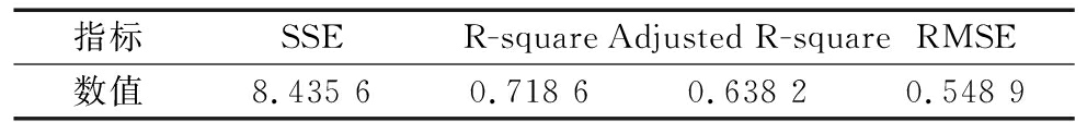 指标SSER-squareAdjusted R-squareRMSE数值8.435 60.718 6 0.638 20.548 9