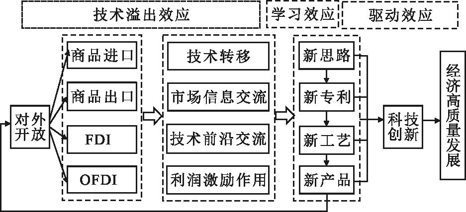 图1 对外开放、科技创新对长江经济带经济高质量发展的作用机理