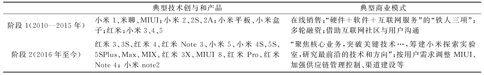 表3 小米典型技术与商业行为