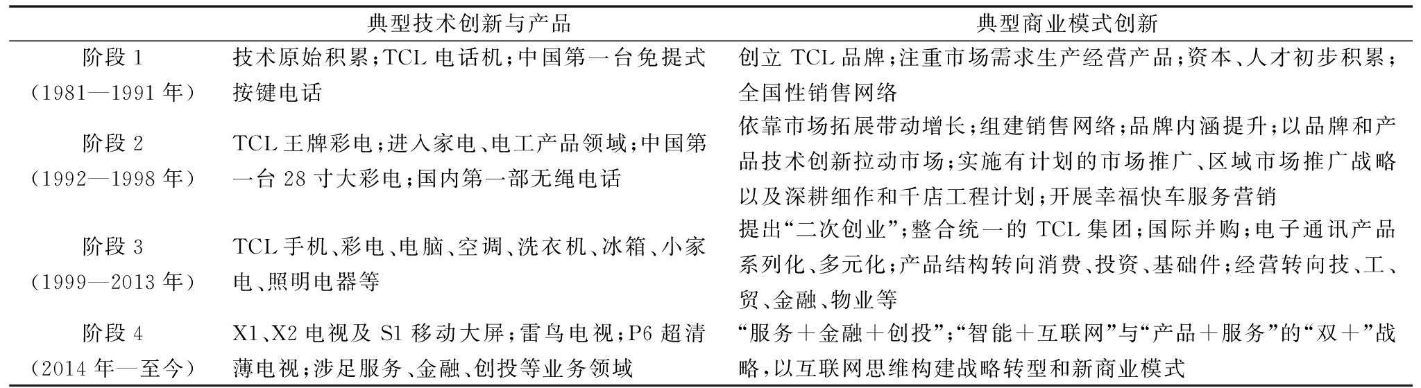 表1 TCL典型的技术创新与商业模式创新