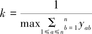 (3)求解标准关联矩阵X。根据直接关联矩阵Y得到k值,然后将k值与直接关联矩阵Y相乘得到标准关联矩阵X。
