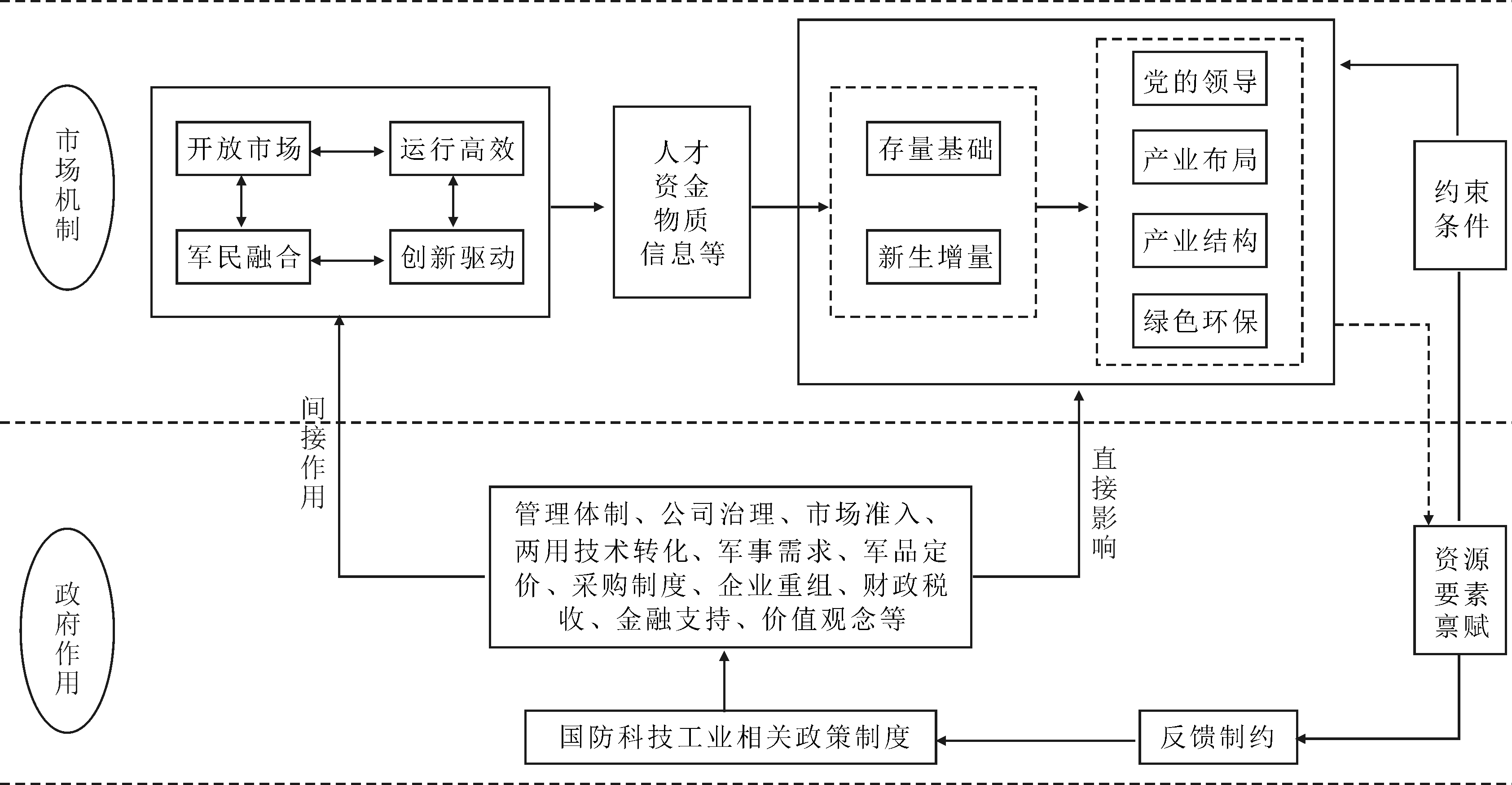 (1)党的领导。建立军地联合的行业管理体制。在现有国家国防科技工业局基础上,建立军方装备采购和管理部门,形成军地一体化的权威管理体制;在企业层面,处理好党组织与公司其它治理机制的关系,在不干涉企业生产经营的前提下,发挥党组织的职能作用。