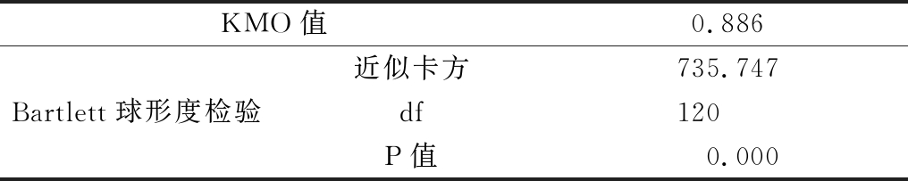 KMO值0.886近似卡方735.747Bartlett球形度检验df120P值0.000