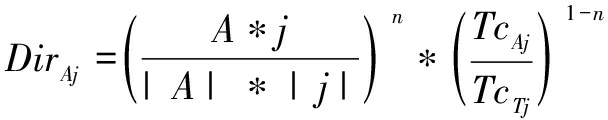 其中,DirAj表示城市A的j产业分工水平,为城市CA的产业结构向量,j表示产业Ij的单位向量,TcAj表示j产业在CA的产业体量,TcTj表示j产业在整个城市群的产业体量。对于式(4)中不同参数的解析如下:①