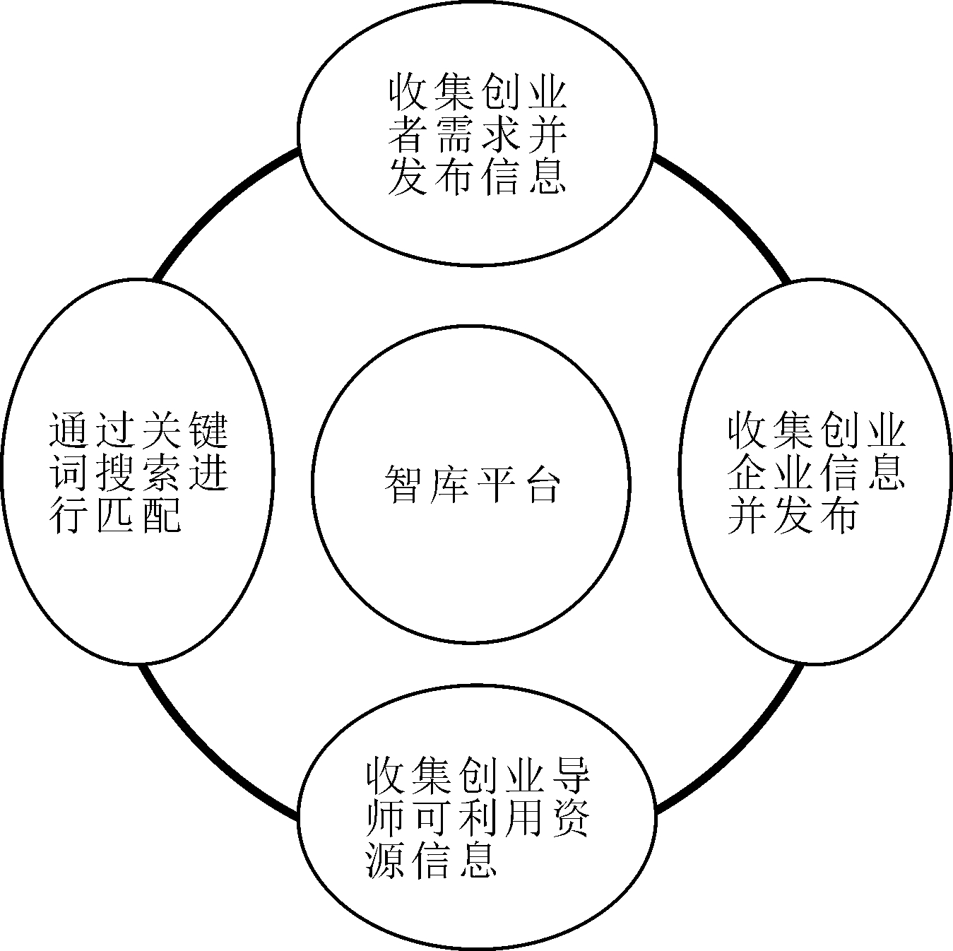 在该智库平台中,由于创业导师正式开展创业指导往往是第三方组织(政府公共服务部门、高校、科技园、孵化器、众创空间等机构)配对创业者及创业导师的过程,因此第三方组织起到了至关重要的作用。首先,能否实现预期效果取决于实施过程中三者的结构性特征。因此,充分发挥创业导师的帮扶作用,第三方组织必须担负起导师与创业者匹配过程中的管理职责,而不是让创业导师与创业者自发建立指导关系。第三方组织支持不仅能够监督创业导师与创业者的匹配关系,还可以有效帮助创业者克服接受创业导师帮扶等心理障碍;其次,由于创业者几乎不具备选择导师的知识,第三方组织应积极引导创业者选择正确的导师[28]。第三方机构需要基于创业者的现实需求作出初步诊断,然后设计出合理匹配方案;最后,构建合理的创业指导支持体系,运用大数据建立创业导师数据库,创建多维度创业导师网络,采取“多对一”、“一对多”或“多对多”等指导方式,打造创业导师与创业导师、创业导师与创业者、创业者与创业者间的交流平台。