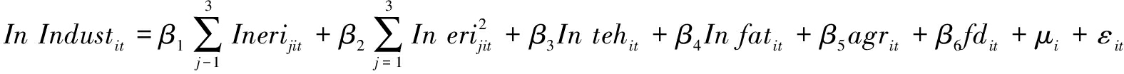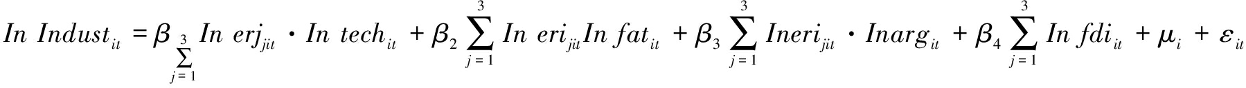 其中,Ineri·Intech表示不同类型环境规制与技术创新的交互项;Ineri·In fat表示不同类型环境规制与要素结构的交互项;Ineri·Inagr表示不同类型环境规制与产业集聚程度的交互项;Ineri·Infdi表示不同类型环境规制与外商直接投资的交互项。
