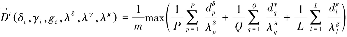 其中,Industi表示高端制造业i绿色全要素生产率;δ=(δ1,…,δP)表示高端制造业绿色全要素生产率的P类投入要素,主要包括资源、劳动力和资本投入。其中,考虑到高端制造业发展对能源的消耗,以及作为环境污染来源的主体要素,选取终端能源消费量作为资源投入表征指标,劳动力投入以上年末与本年末就业人员规模平均值表示,资本投入以资本存量表示,采取永续存盘法计算:Kit=(1-lit)Ki,t-1+Iit/Rit,式中,以2006年不变价格实际资本存量为基期Ki,t-1,lit表示折旧率,Iit表示新增固定资产投资,采用投资价格指数法进行数值转换;γ=(γ1,…,γQ)表示高端制造业绿色全要素生产率的Q种期望产出,选取高端制造业增加值加以衡量;g=(g1,…,gL)是指绿色全要素生产率的L种非期望产出,选取高端制造业的工业“三废”指标表示;