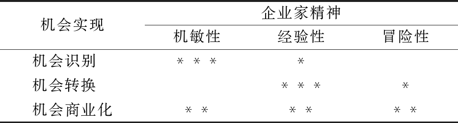 表2 创业机会实现与企业家精神