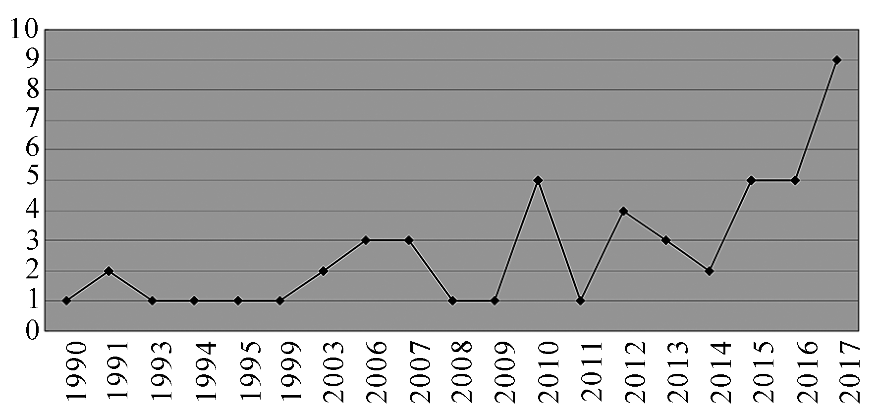 图1 1990-2017年文献数量变化趋势