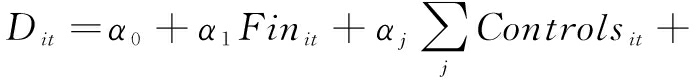 (2)金融资产配置。关于金融资产的内涵,本文结合Penman and Nissim 提出的财务分析框架,参照刘贯春[3]的方法,将金融资产分为短期金融资产(Fin1)和长期金融资产(Fin2)两类。为了更直接地反映企业进行金融资产配置投资行为,借鉴Orhangazi[6]、谢家智[9]、杜勇[12]的做法,用金融资产占总资产的比重衡量企业金融资产配置水平。