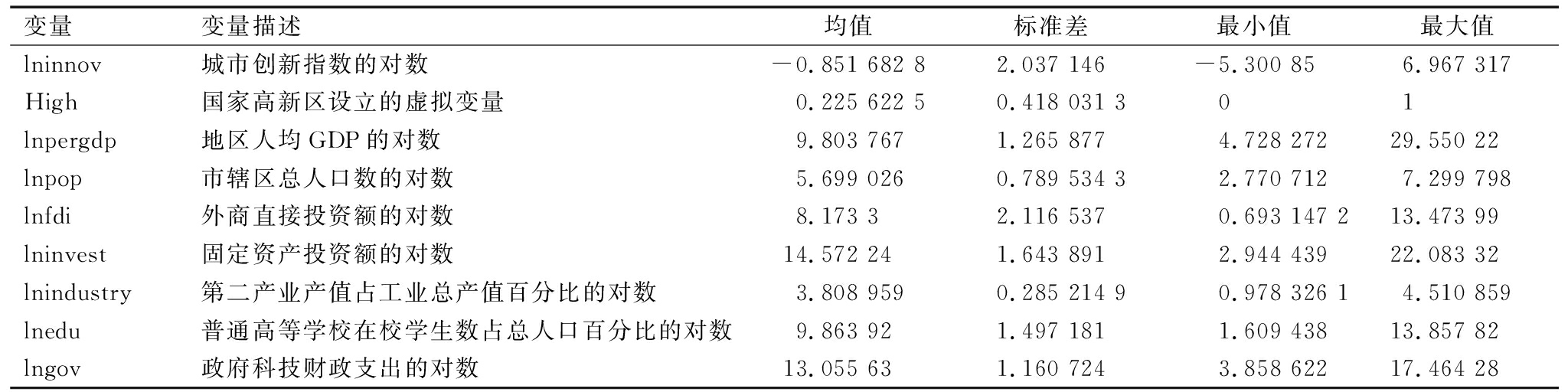 本文考察国家高新区能否提高城市创新能力,被解释变量为城市创新指数(lninnov),该指标数据涵盖了2001-2016年全国336个城市的创新指数,其优点在于利用创新产出、专利价值等微观数据,客观有效地考察全国城市创新能力。