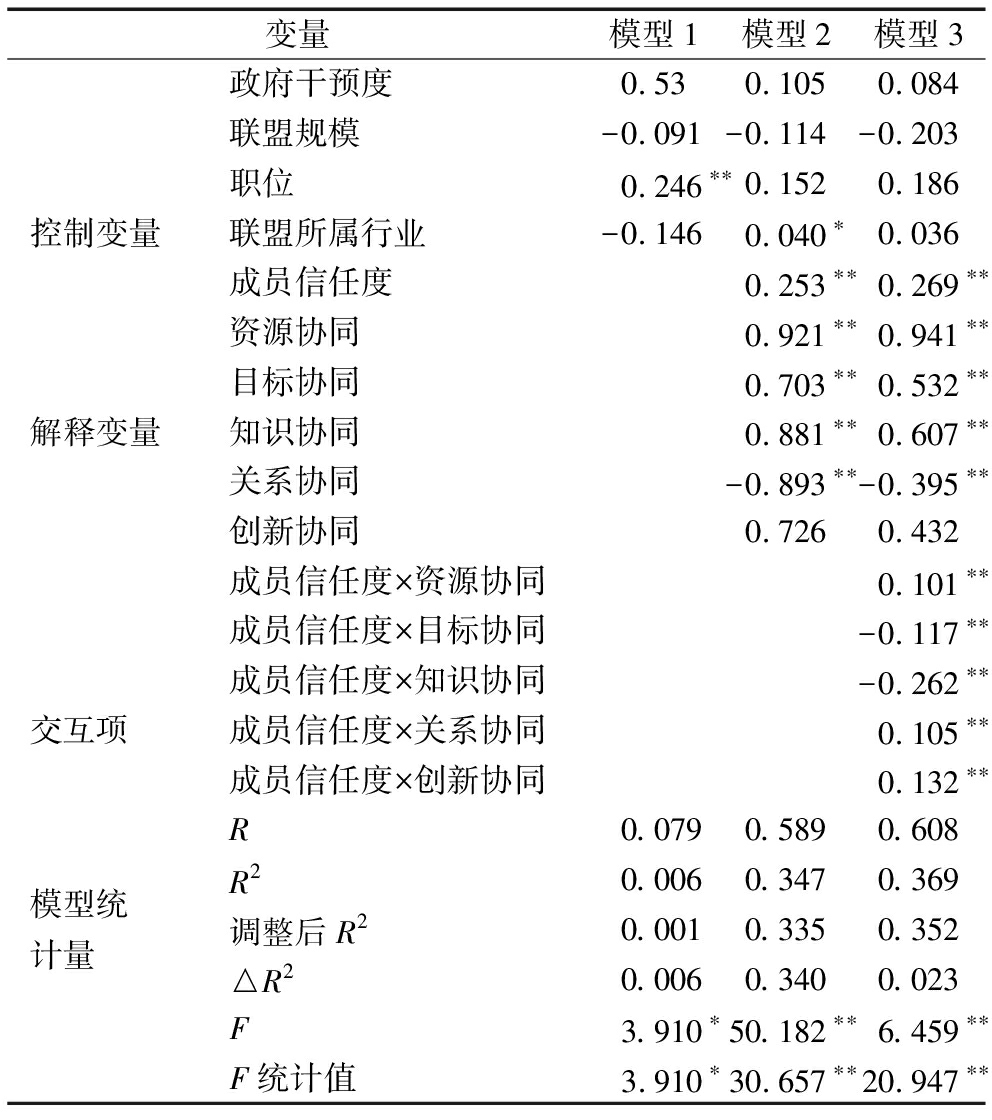 表9 联盟成员信任度的调节作用