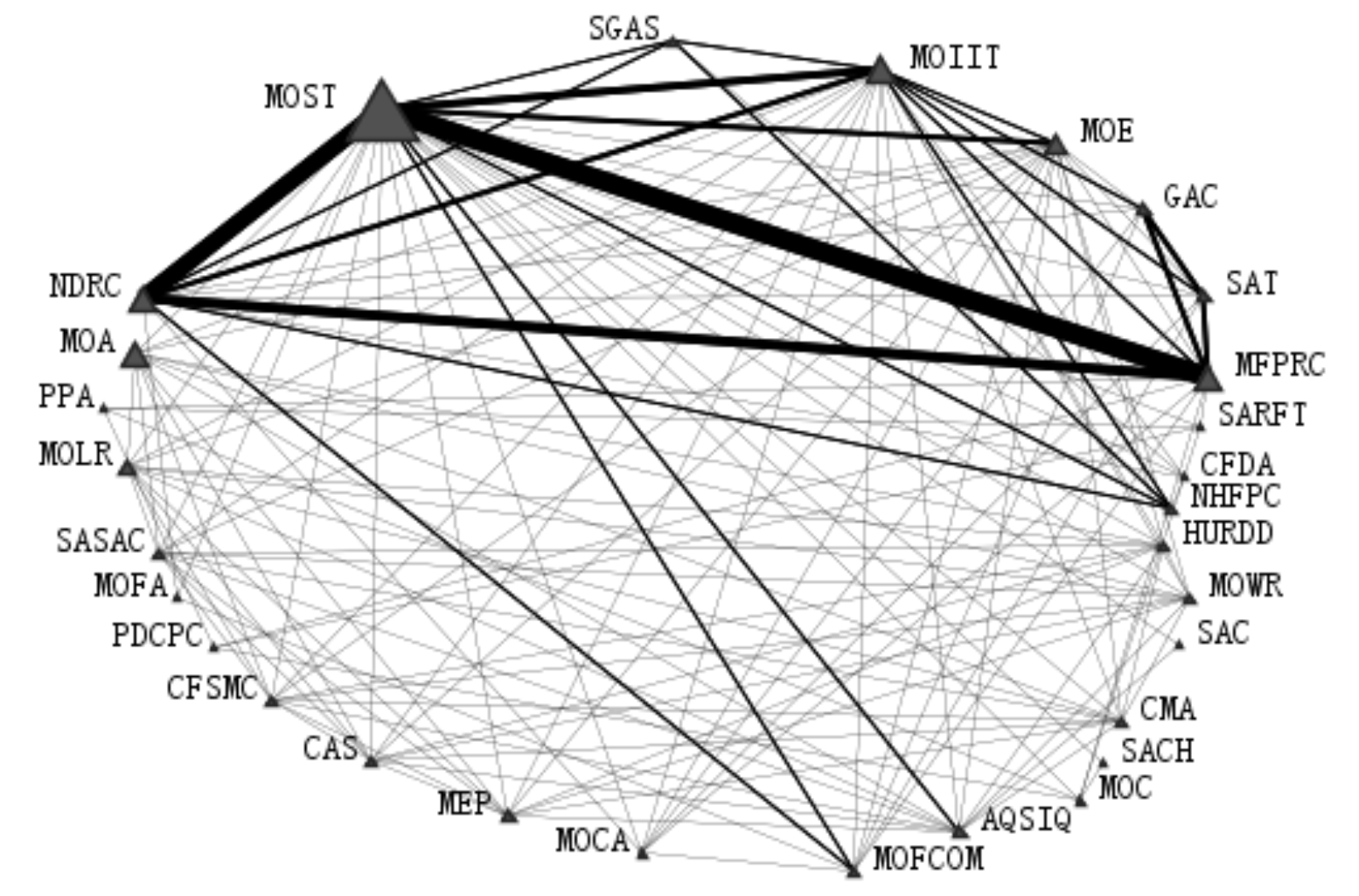 图2 中央政策主体合作网络(注:仅保留度大于1的节点)
