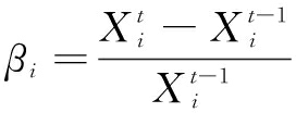 (5)市场竞争态(Ωi(αi,βi)):一国市场竞争程度、技术产品盈利状况、科技产品市场占有率会对知识产权保护产生重要影响。在知识产权保护市场中,整体市场竞争越强,知识产权保护意识和程度就越高,这种情况与单个企业知识产权保护和市场竞争程度的关系正好相反[29]。鉴于此,本文从区域层面考虑市场竞争态对知识产权的影响。此处,参考周旗等[30]的研究结果,采用双指标组合Ωi(αi,βi)反映市场竞争态势,其中,αi为区域经济的市场占有率,βi为市场增长率,计算公式如下: