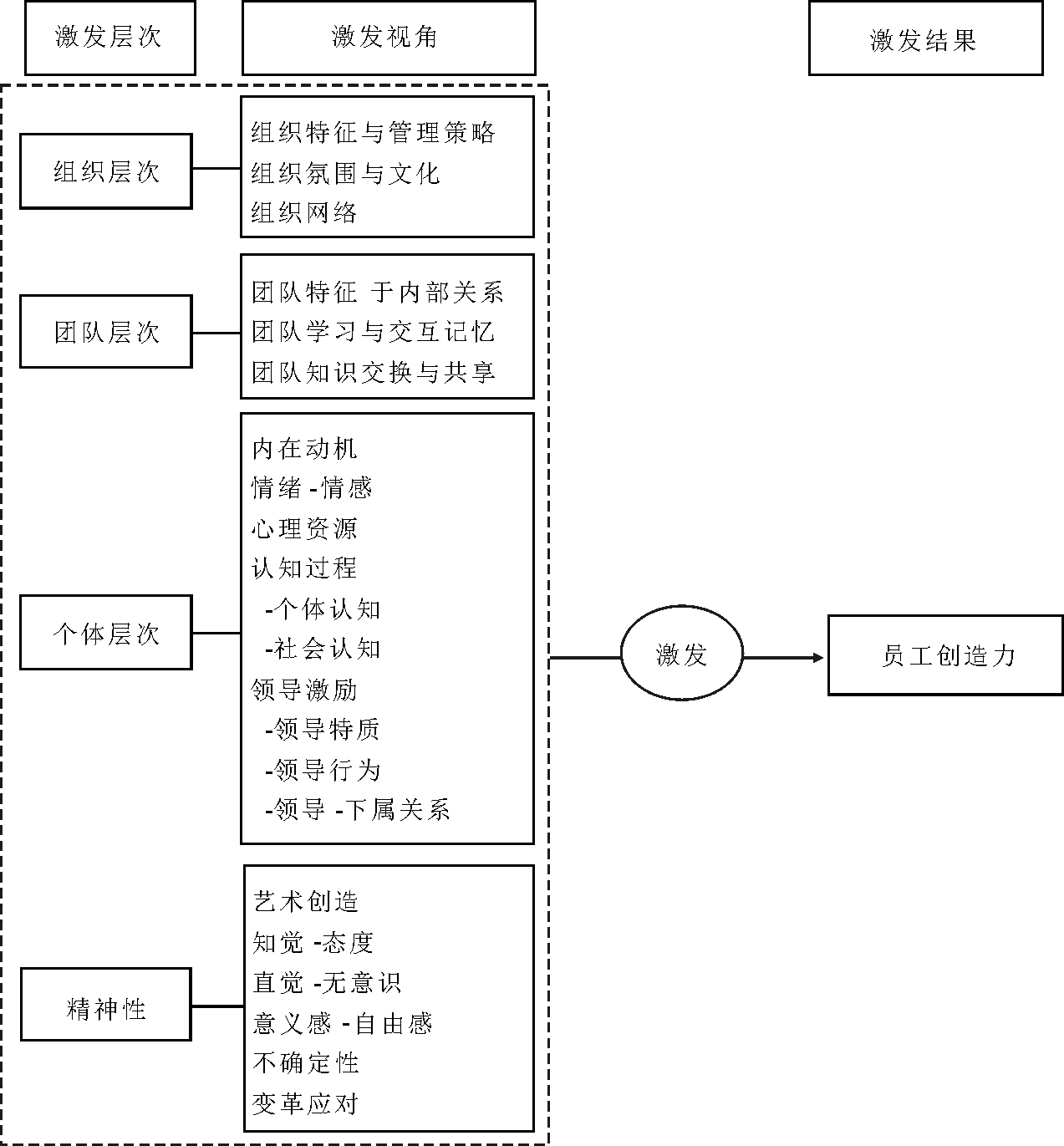 图1 员工创造力激发整合性研究框架